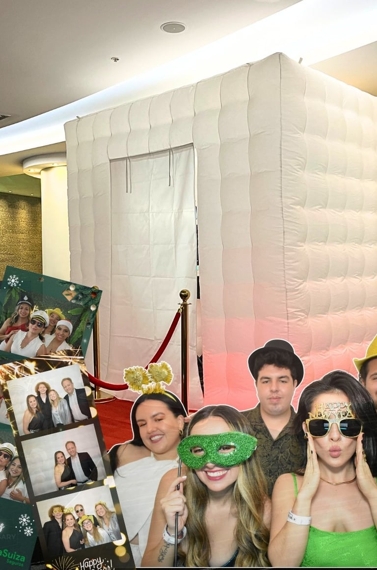 La Cabina Inflable crea un espacio luminoso, amplio y divertido, ideal para capturar fotos en grupo con privacidad y estilo. Su estructura iluminada convierte cualquier evento en un ambiente vibrante y fotogénico.