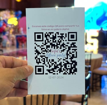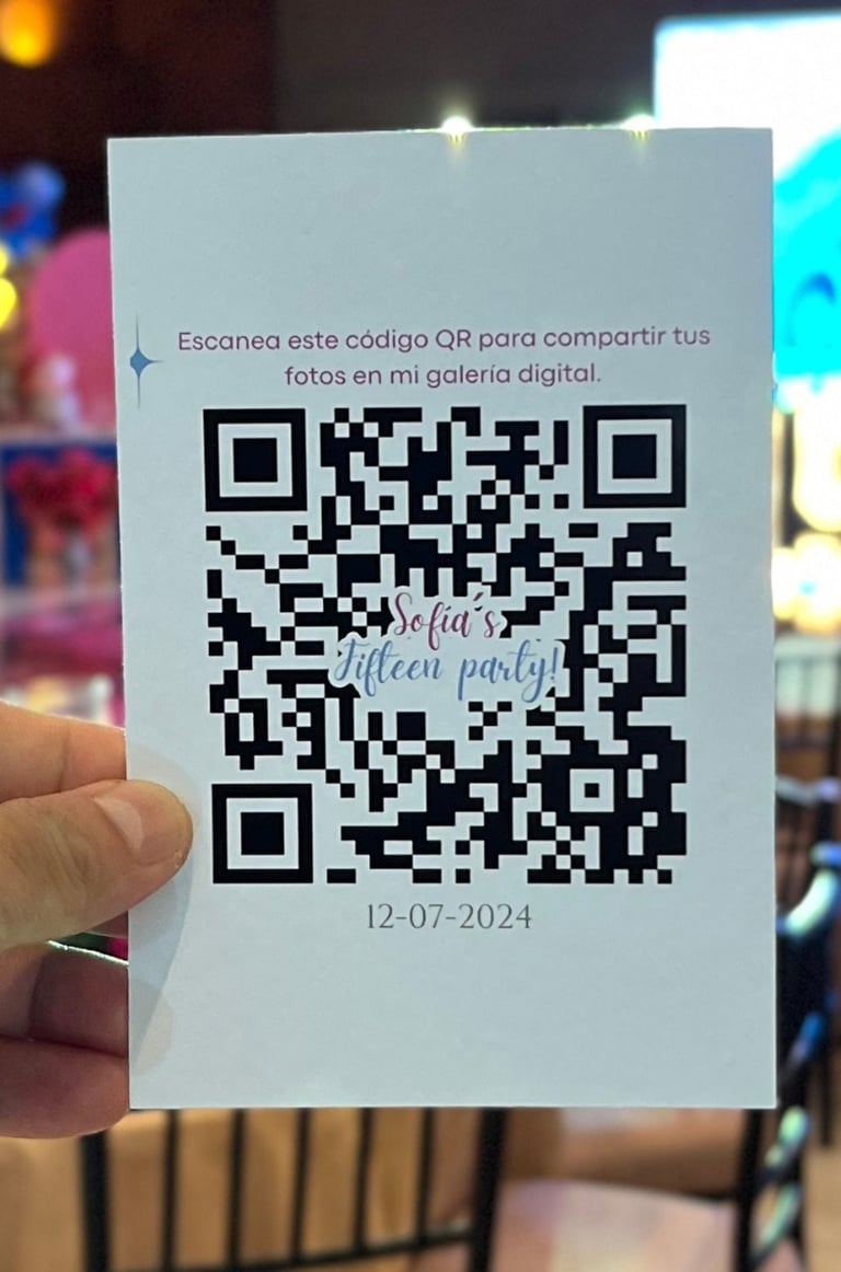 Say Cheese es una aplicación web interactiva que permite a tus invitados subir sus propias fotos escaneando un código QR. Todas las imágenes se guardan en un álbum privado del evento y pueden proyectarse en una pantalla durante la celebración.